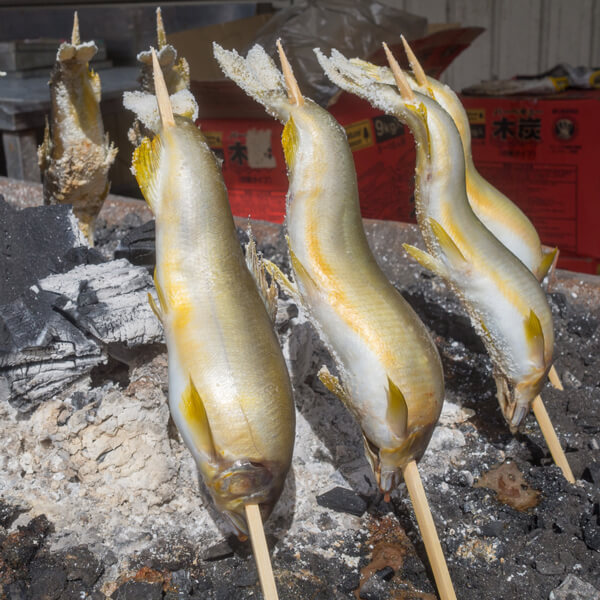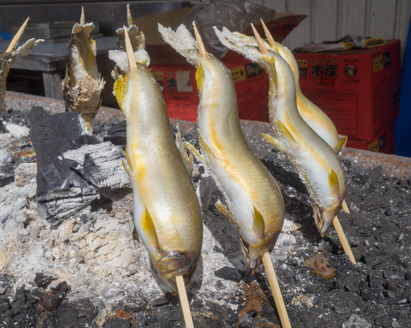 7~8月は、脂がのり、鮎が最もおいしいとされる時期です。唐揚げや天ぷらなど様々な調理法がありますが、一番のおすすめは、旬の鮎を最も活かす「塩焼き」。 ピンと張ったヒレにつける化粧塩と躍動感をもたらすおどり串で仕上げられた姿が、目を楽しませ、食欲をそそります。久慈川のほとり佇む、道の駅「かわプラザ」等でも、焼きたての鮎を堪能することができます。